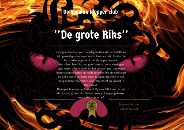 Heeb je de boemannen in je dromen of nachtmerries verslagen? Aarzel dan niet om contact op te nemen met de opper boeman of gebruik dit om mij je eigen boogeyman klopper club certificaat te laten maken!!