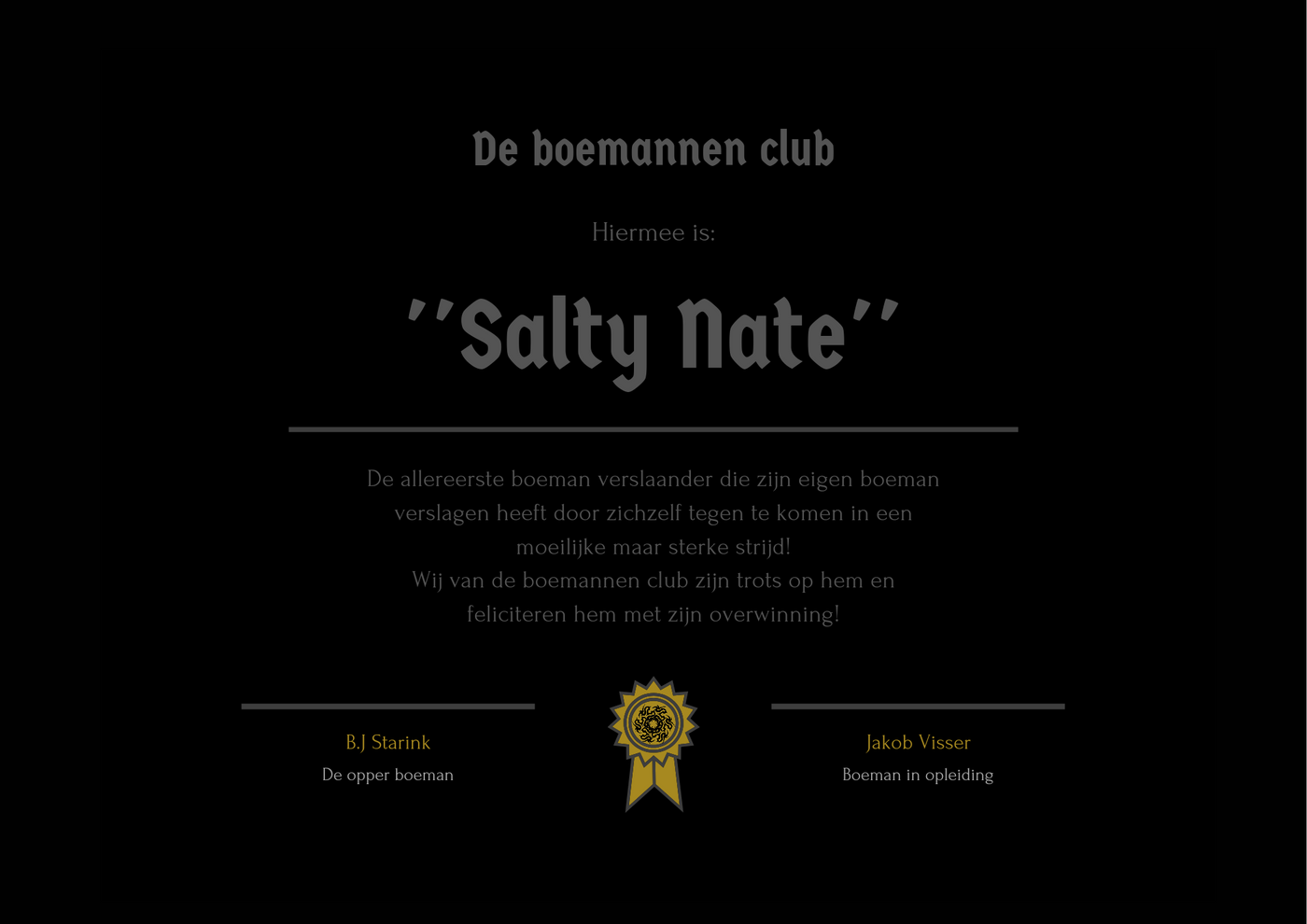 The boogeyman beater club exclusive certificate!